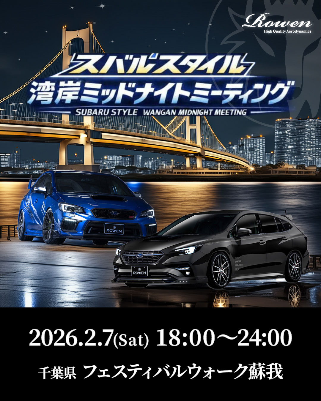 本日(2026年2月7日)出展を予定しておりました スバルスタイル湾岸ミッドナイトミーティング は、雪予報による安全確保のため 中止 なりました。